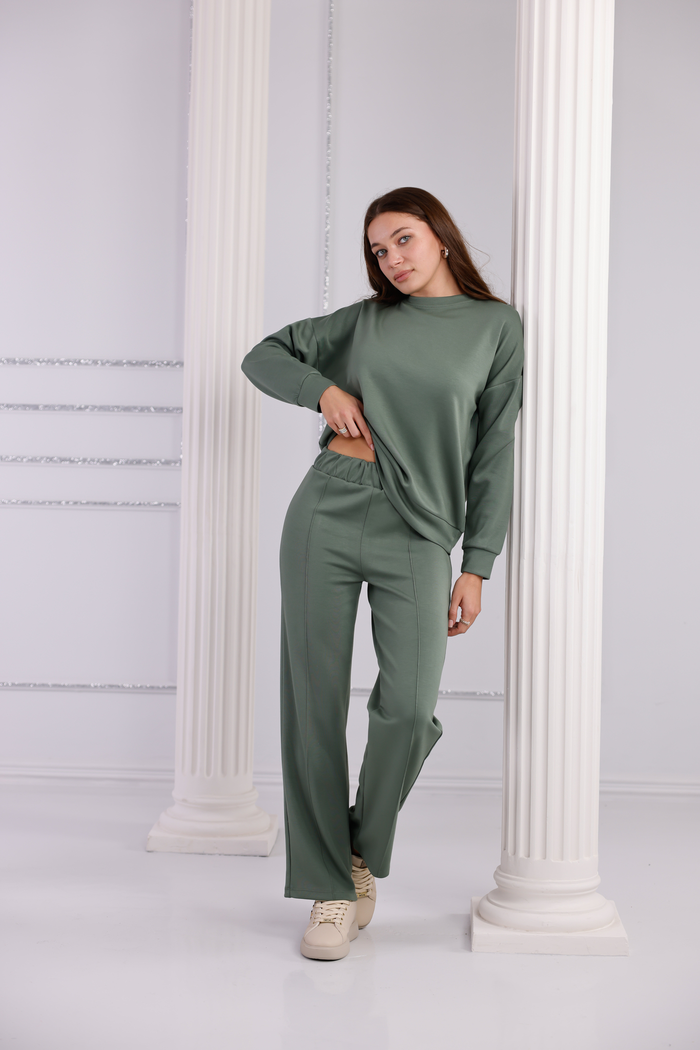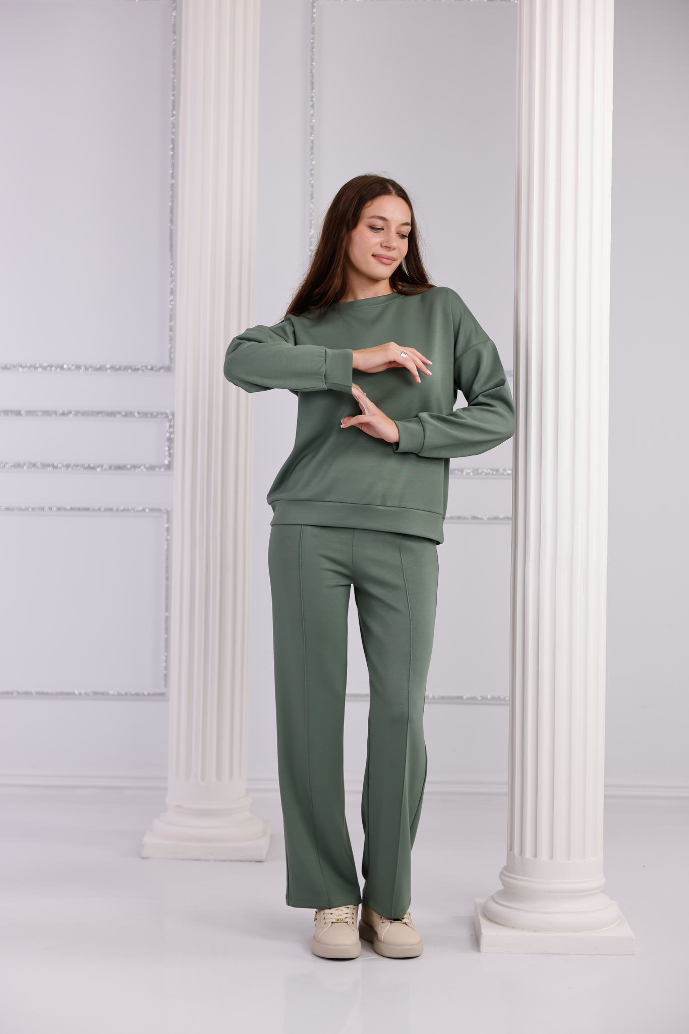 🌿 Doğadan İlham Alan Şıklık: Modal Haki Bol Paça Eşofman Takımı