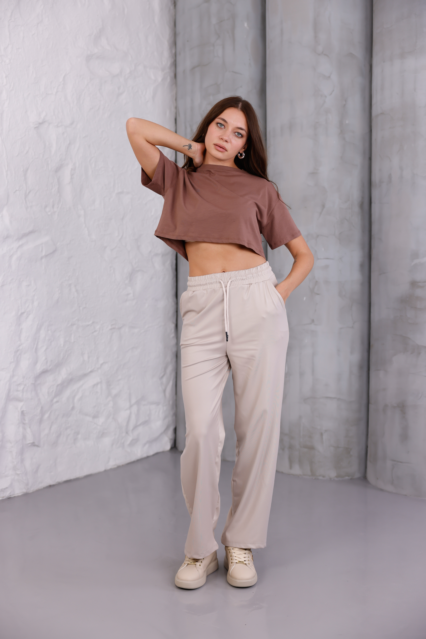 Casual: Crop top, spor ayakkabı ve sırt çantası ile günlük, enerjik bir görünüm yaratın (Görseldeki gibi).