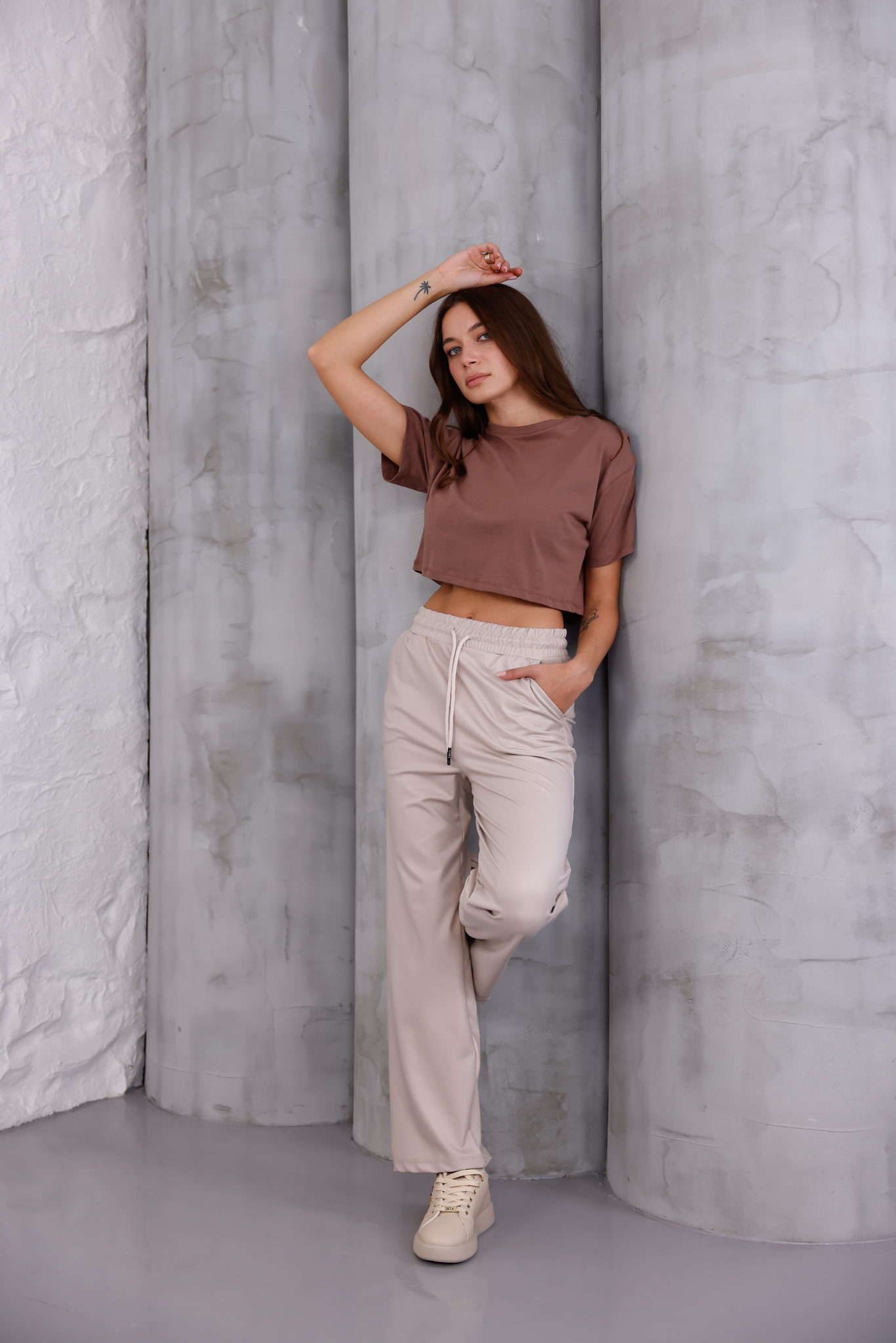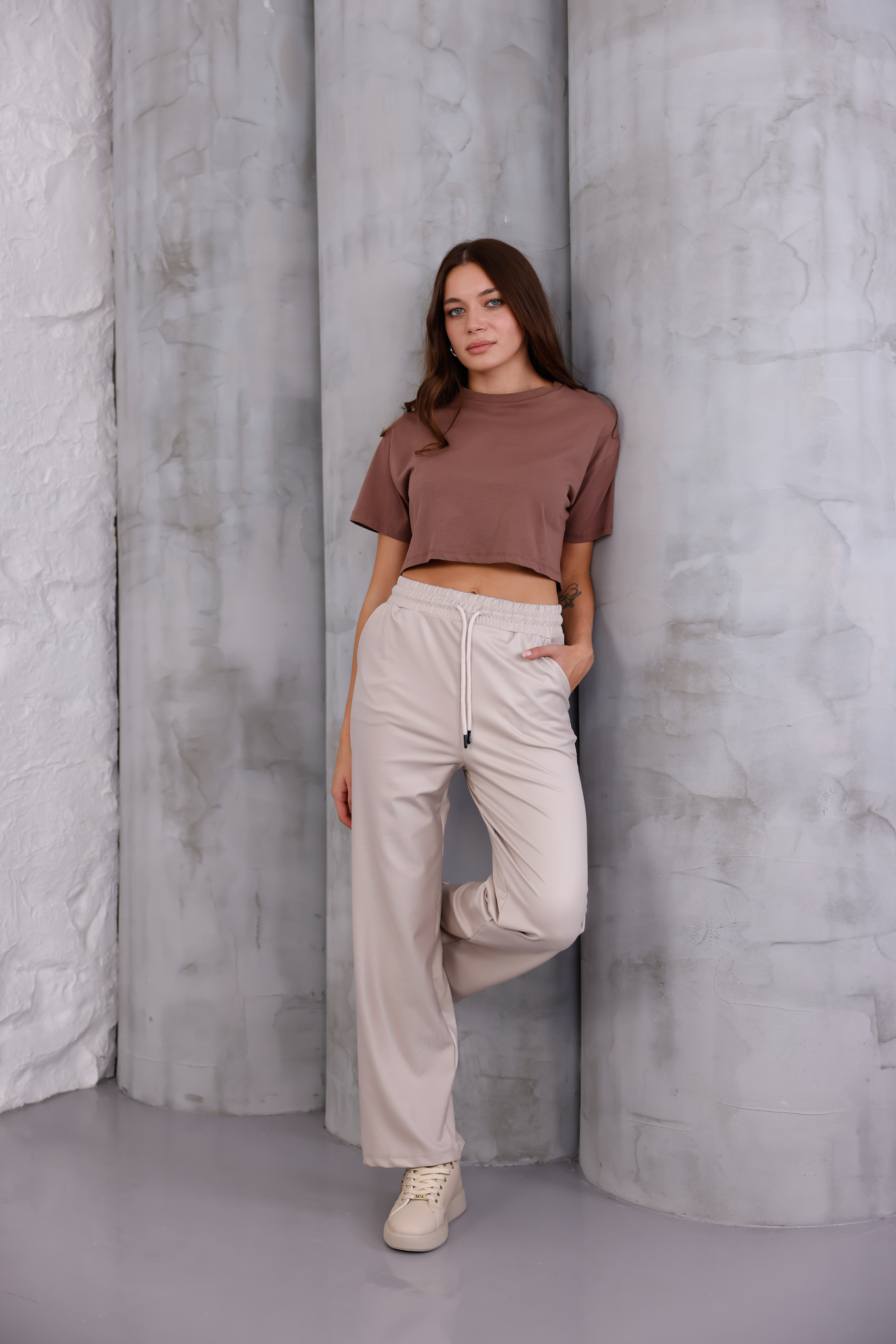 Bu bej renkli, bol kesimli pantolon, alışılmışın dışındaki deri görünümü ve eşsiz konforuyla dikkatleri üzerinize çekecek. Sokak stilinin rahatlığını lüks bir dokunuşla birleştiren bu parça, gardırobunuzun yıldızı olmaya hazır.