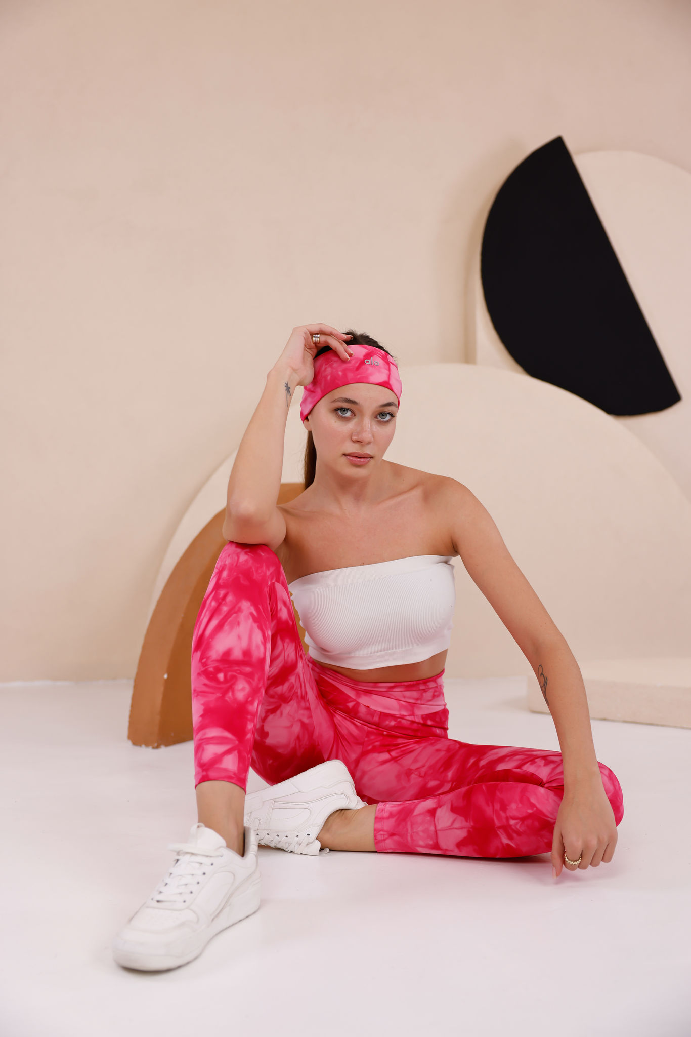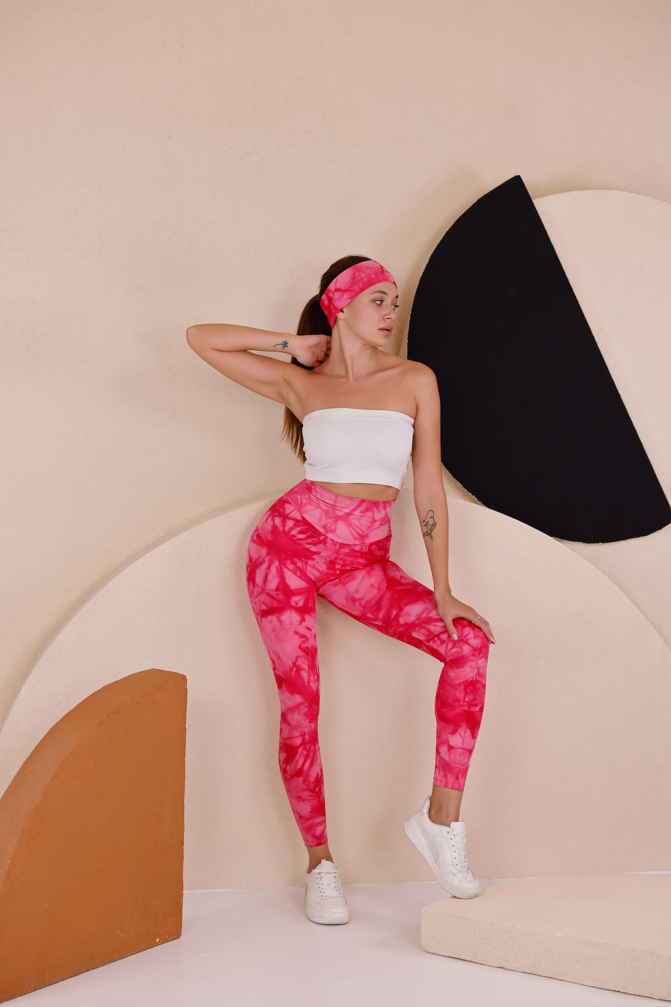 Tie-Dye Pembe Tayt ve Bandana Seti ile hareketli ve cesur stilinizi hemen oluşturun!